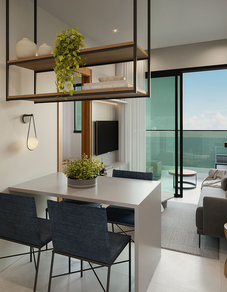 No BOSSA Farol de Itapoan, cada apartamento é um santuário de elegância e conforto, desenhado para amplificar a conexão com o deslumbrante cenário marítimo. Com opções que variam de práticos studios a unidades de duas suítes, todos os apartamentos contam com acabamentos de alta qualidade, design inteligente, e janelas amplas que emolduram vistas espetaculares do mar e do icônico Farol de Itapoan.